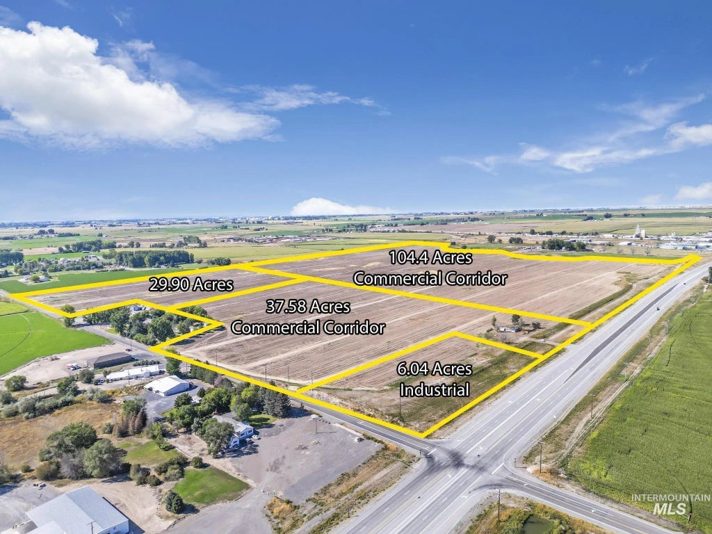 The best commercial land opportunity in Southern Idaho on US 93 with high traffic count in commercial zone. 104.4 Acres of commercial corridor with frontage on US Highway 93. Interstate 84 approximately one mile south and Hwy 25 is 3.5 is miles North. The property is currently farmed and there are two additional parcels available that include Industrial and additional Commercial Corridor for a total of adjacent 35.91 acres. Use charts and plats available upon request.